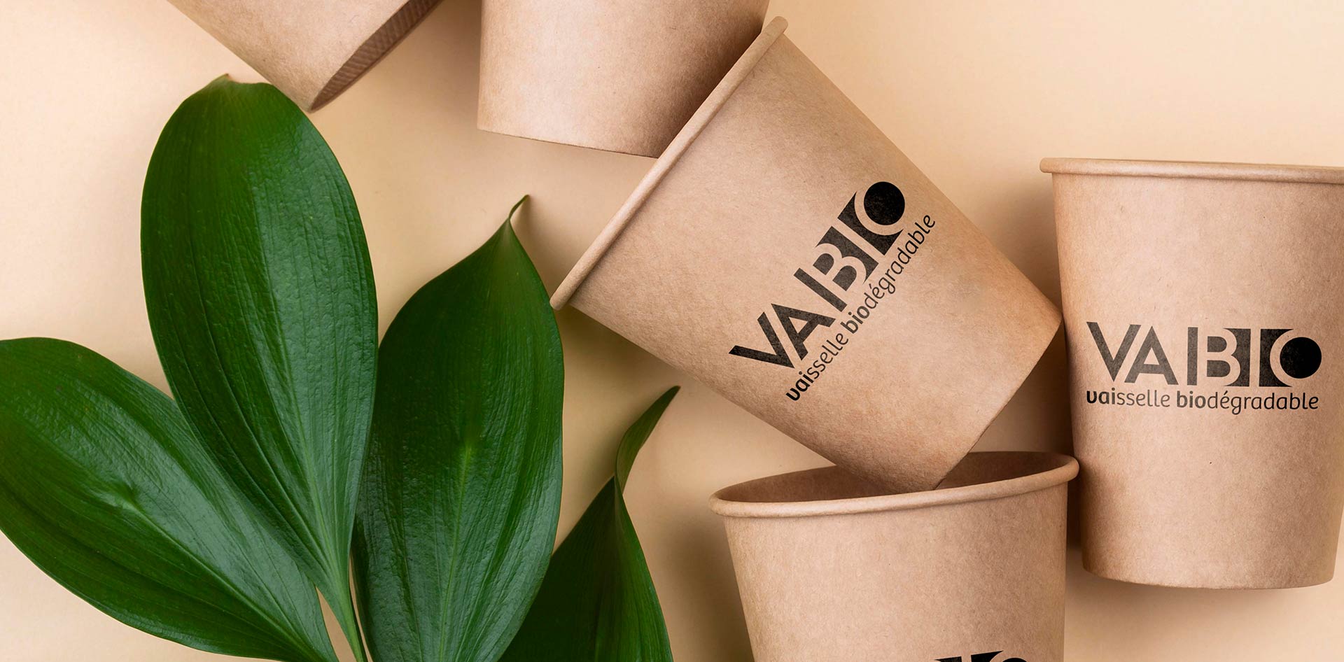 Bien sûr, le nom VAIBIO est l’abréviation de VAIsselle BIOdégradable, en base line. Mais le fait d’avoir opté pour un traitement graphique spécifique de chaque syllabe confère au logo un sens complémentaire : celui d’aller vers le bio (je VAIS vers le BIO). Ce choix est un clin d’oeil adressé à la clientèle de VAIBIO, engagée et militante. On ne s’oriente pas par hasard vers une boutique en ligne de vaisselle biodégradable, plus chère que la vaisselle jetable classique.